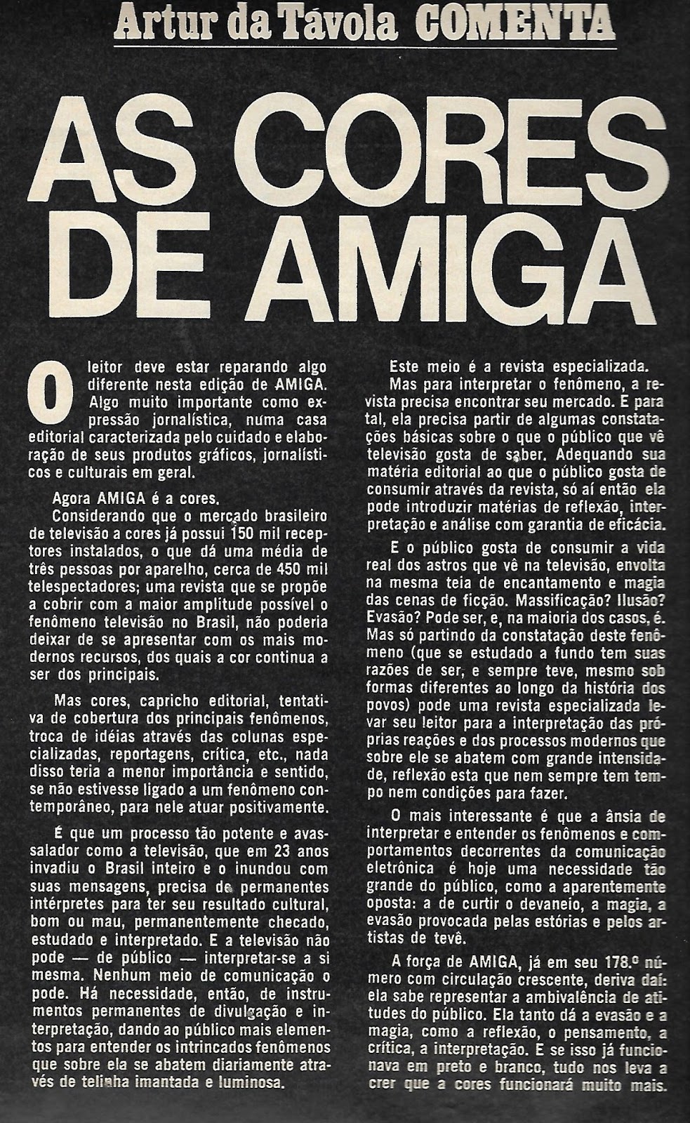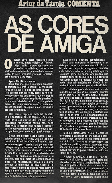 Revista maravilhosa mesmo! Nívea Maria, novinha, novinha na capa, as reportagens coloridas, com umas cores "desmaiadas", Mulheres de Areia fazendo o maior sucesso e nem poderia ser diferente, elenco estelar, história hiper bem escrita e empolgante, a Tupi brilhou em várias produções. Que coisa mais esquisita o "sumiço" de Tarcísio Meira, só podia ser fake, nunca soube dessa história...Mais um registro histórico de Amiga... 44 anos atrás...