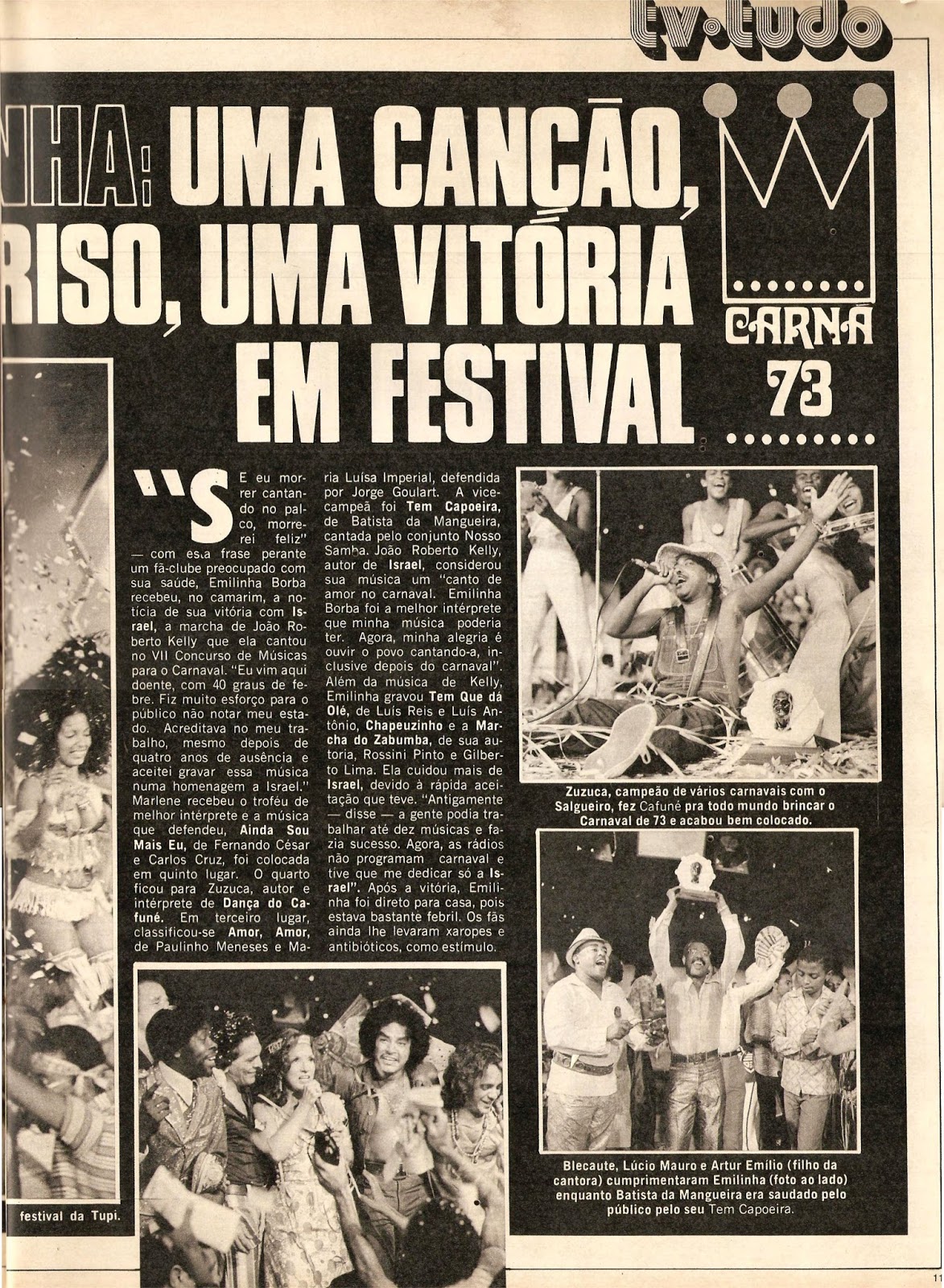 Em cima, os clóvis, uma das mais autênticas manifestações do carnaval.