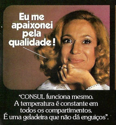 O prestígio de Eva Wilma, Susana Vieira e Sandra Barsotti ajudava vender geladeiras, Nívea Maria perucas, Sônia Braga margarina e Nuno Leal Maia fogão.
